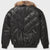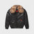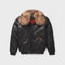 Men's V-Bomber Leather Zipper Jacket Puffer Fox Fur Collar Black Lambskin Coat