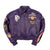 - Traditional flight jacket applied multi layered leather patches with direct embroidery and multi colored rhinestones applied throughout on the front body, back body and sleeves of the jacket