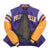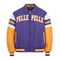 2 COLOR PIECED SLEEVES WITH APPLIED LEATHER ATHLETIC STRIPING STUD AND RHINESTONE DETAIL