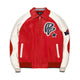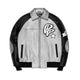 CONTRAST COLOR 100% PLUSH LEATHER RAGLAN SLEEVES WITH APPLIED LEATHER STRIPING