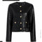 Crafted from soft, supple lambskin, it offers lightweight warmth with a perfect modern fit. The jacket features a distinctive studded neckline and a sleek gold zipper, setting it apart from ordinary outerwear.