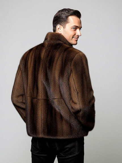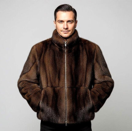 Luxury Men’s Real Mink Fur Jacket – Brown Full Skin Bomber Jacket