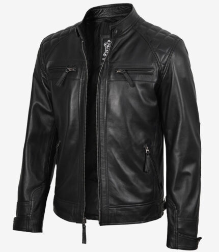 Black Quilted Lambskin Leather Biker Jacket – Studded Bomber Coat