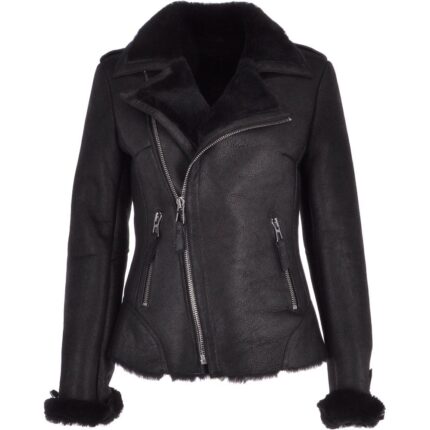 Women’s Luxury Side Zip Sheepskin Pilot Jacket Light Tan
