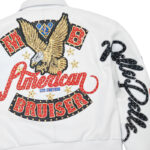 Make a bold statement with the American Bruiser Women’s Crop Jacket from Pelle Pelle — a luxurious mix of attitude and artistry. Crafted from 100% genuine plush leather, this cropped flight jacket is detailed with multi-layered leather patches, direct embroidery, and multi-colored rhinestones for a striking, head-turning look.