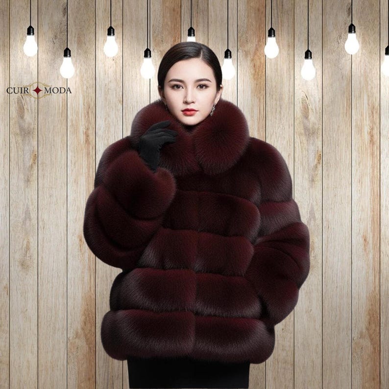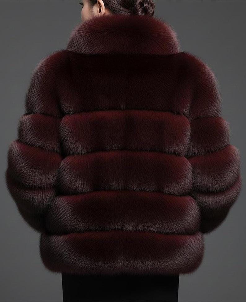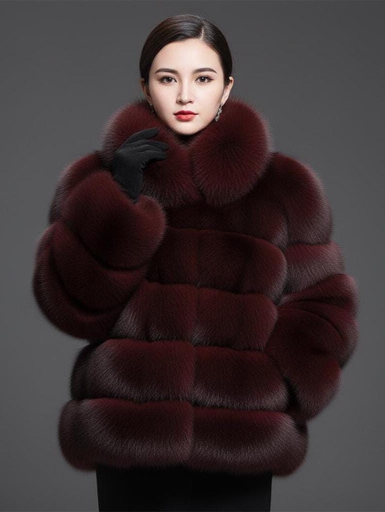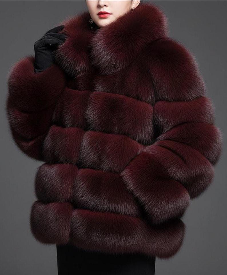 Burgundy Fox Fur Jacket | Luxury Real & Faux Fur Coat
