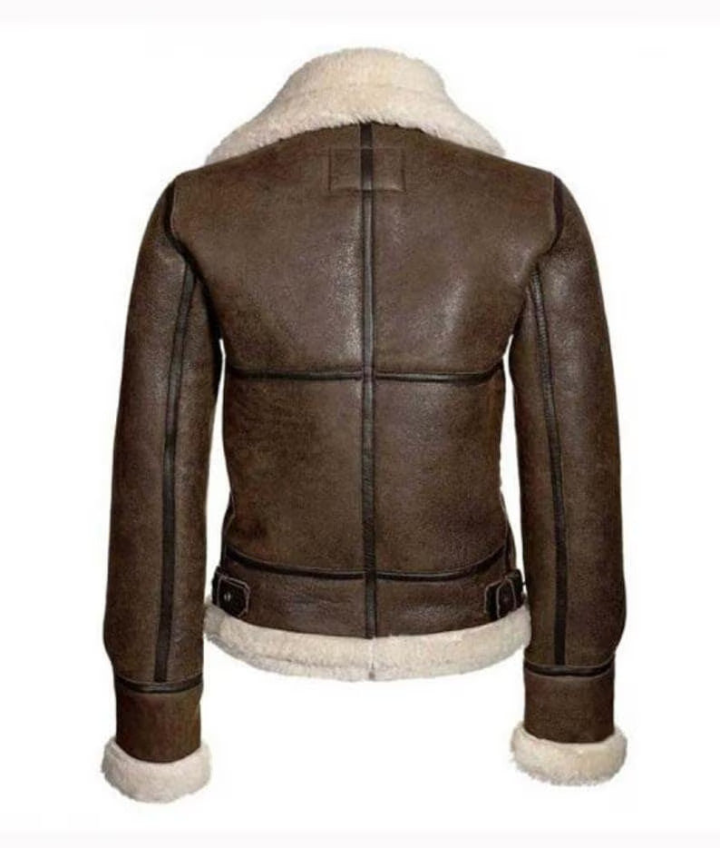Handmade Real Shearling Brown Aviator Jacket Vintage B3 Bomber