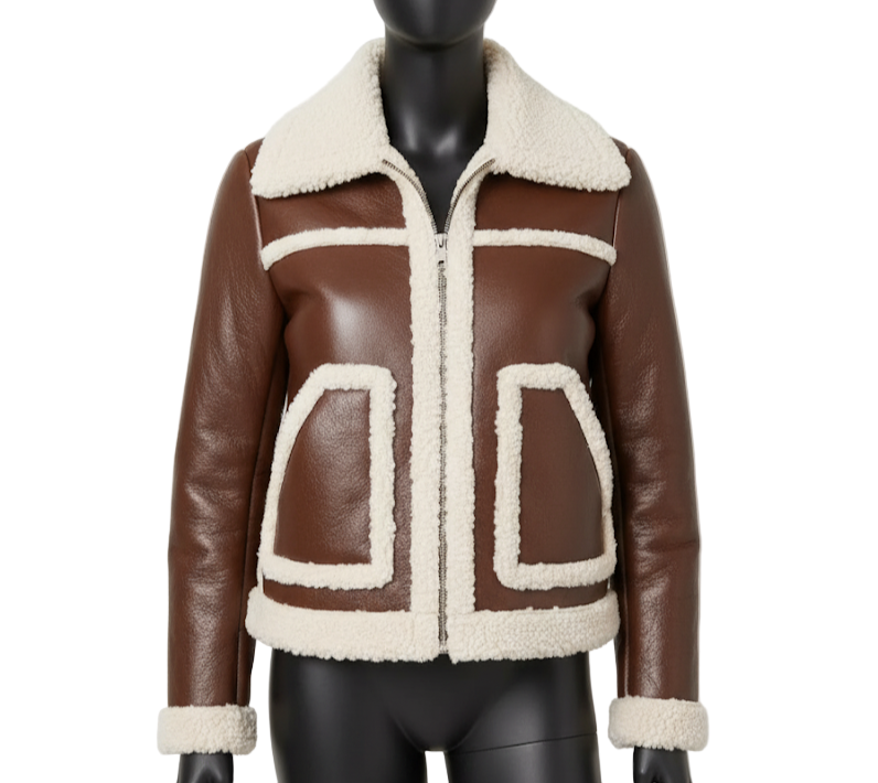 🤎 The soft shearling collar, cuffs, and hem add both warmth and authentic detail.