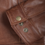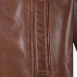 Crafted from 100% real leather, this brown jacket boasts two side pockets, two inside pockets, and an extra pocket for mobile devices of all sizes. With adjustable cuff snap tabs, it ensures a perfect fit.