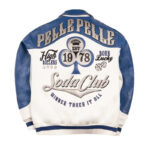 raised neoprene backed leather pelle pelle soda club edition artwork athe the wearer’s left chest