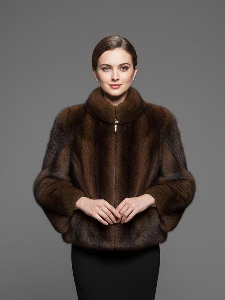 Real Mink Fur Jacket in Dark Brown – Luxurious Elegant Winter Coat