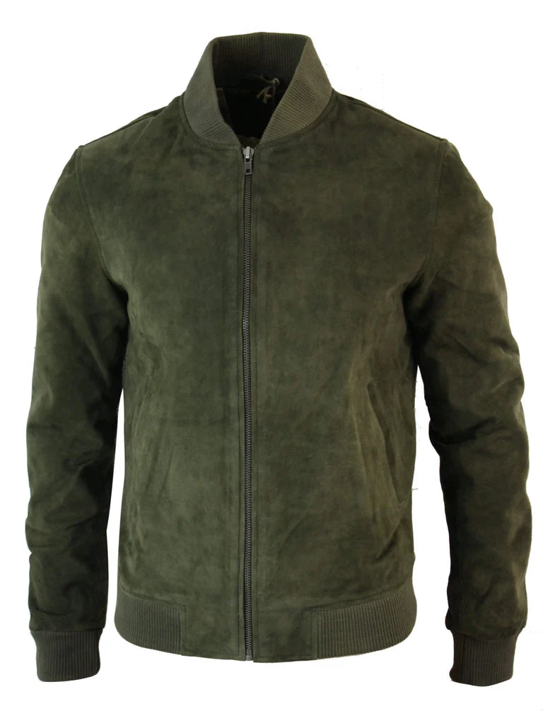 Varsity Mens Real Suede Leather Bomber College Jacket Classic Retro Vintage – Olive